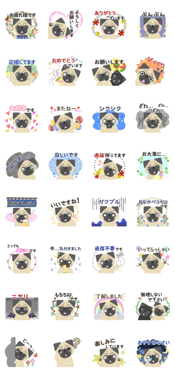 Line絵文字 おしゃれパグちゃんの絵文字 40種類 120円